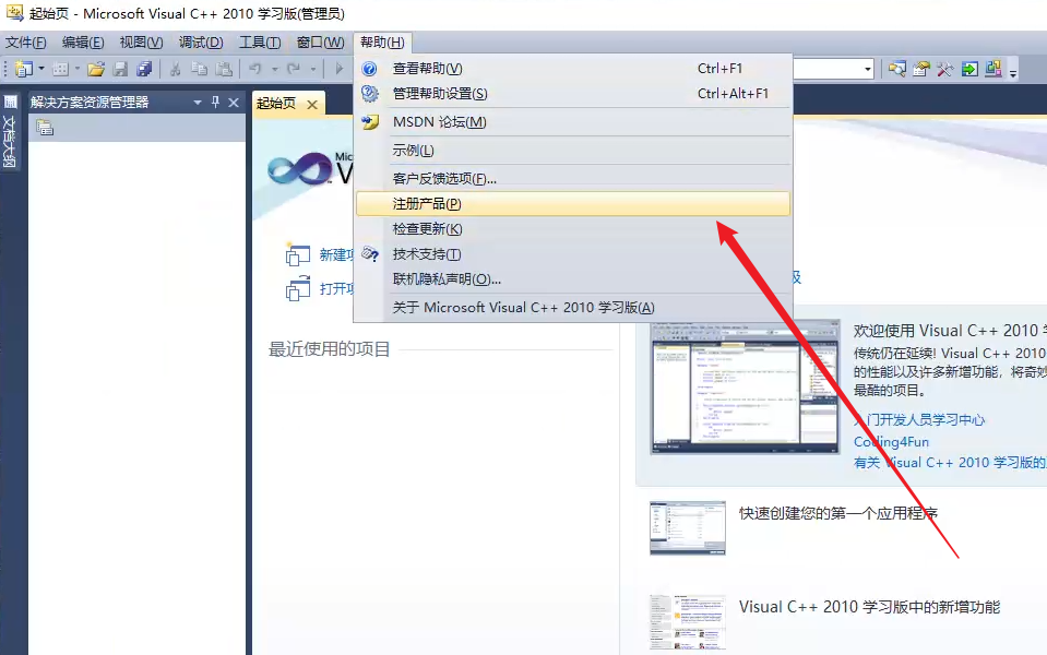 **安装完成后的VC2010只有30天的试用时间,可以使用注册码进行激活。激活方式如截图(激活码:6VPJ7-H3CXH-HBTPT-X4T74-3YVY7